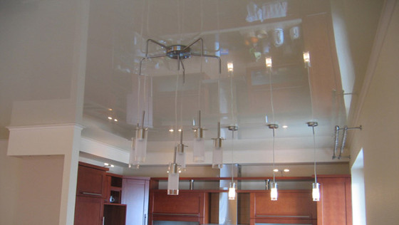 • глянцевые натяжные потолки – отлично подойдут для установки в помещения, небольшие по площади и высоте: за счёт отражающего эффекта комната визуально станет просторнее;