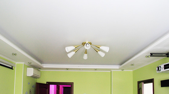 • матовые натяжные потолки – классический вариант, особенно если выбрать полотно белого цвета: оно удивительно точно имитирует всем известную побелку;